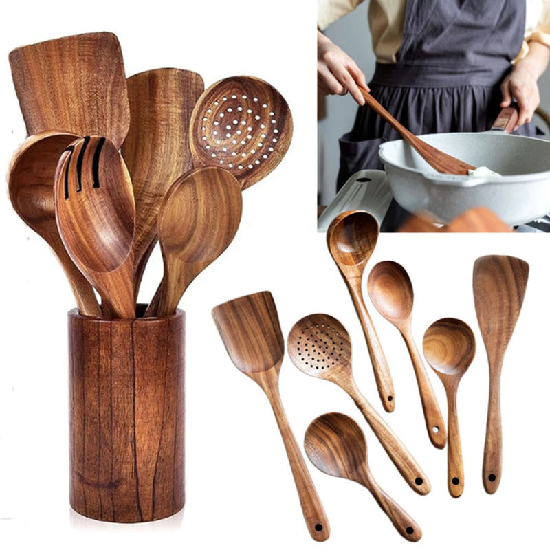 Give your kitchen the upgrade it deserves with our Premium Teak Wooden Utensil Set! Designed for home cooks who want quality tools that protect their pots and pans, these beautiful utensils combine durability with natural elegance for a cooking experience you'll love every single day.